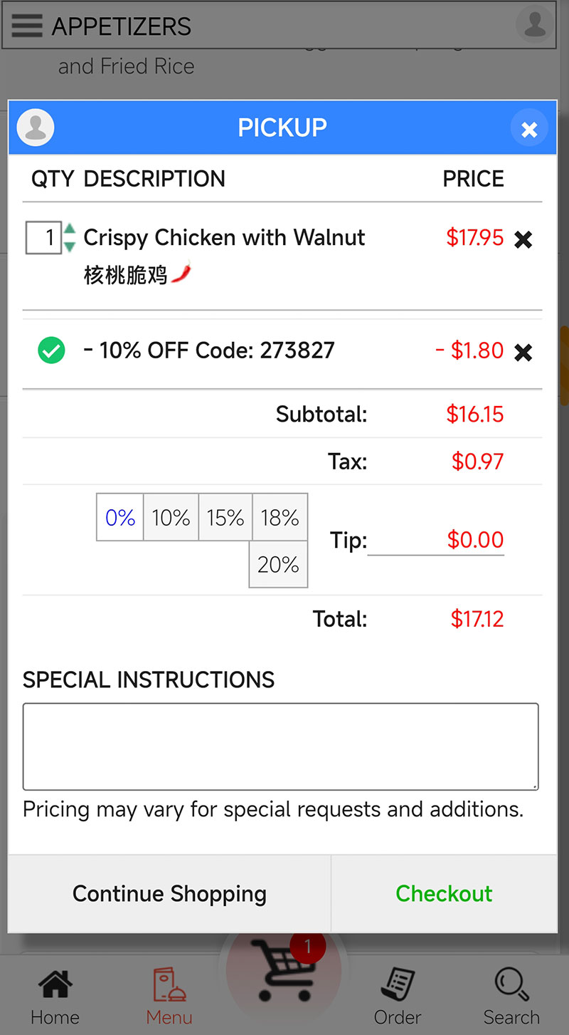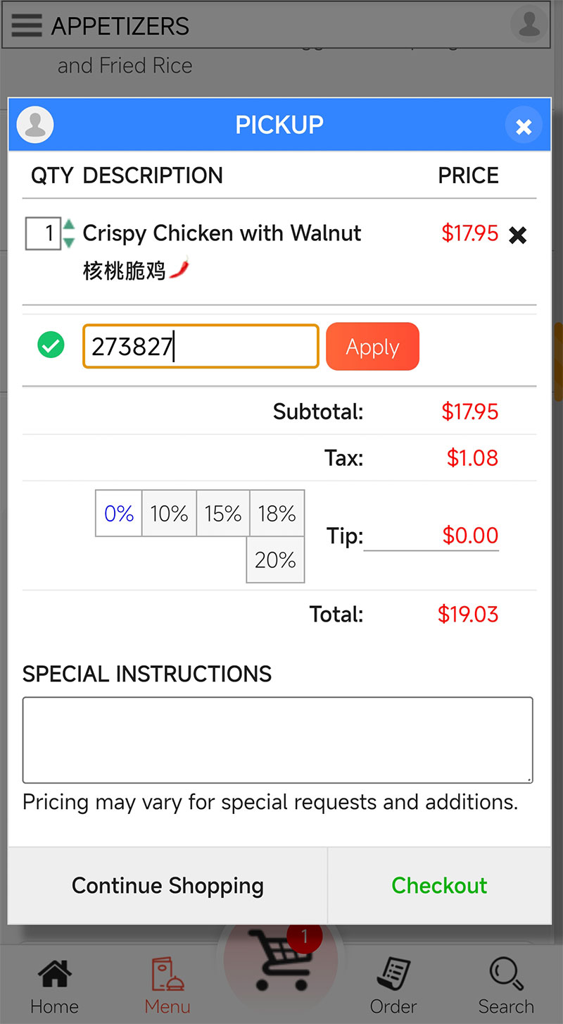 Scan & OrderIf you are currently using a computer to access this webpage, you can also scan the QR code above with your mobile phone and open order online webpage on your mobile phone.